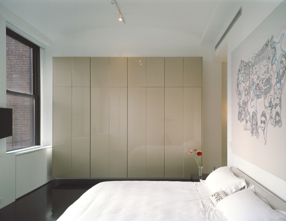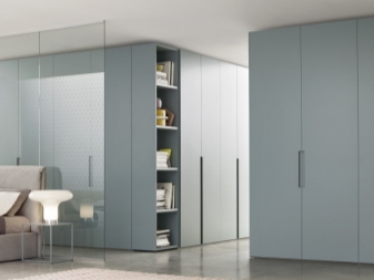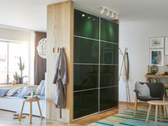 A very interesting solution is a double-sided wardrobe.which has opening both in front, and behind. This design is used as a kind of partition for space zoning.