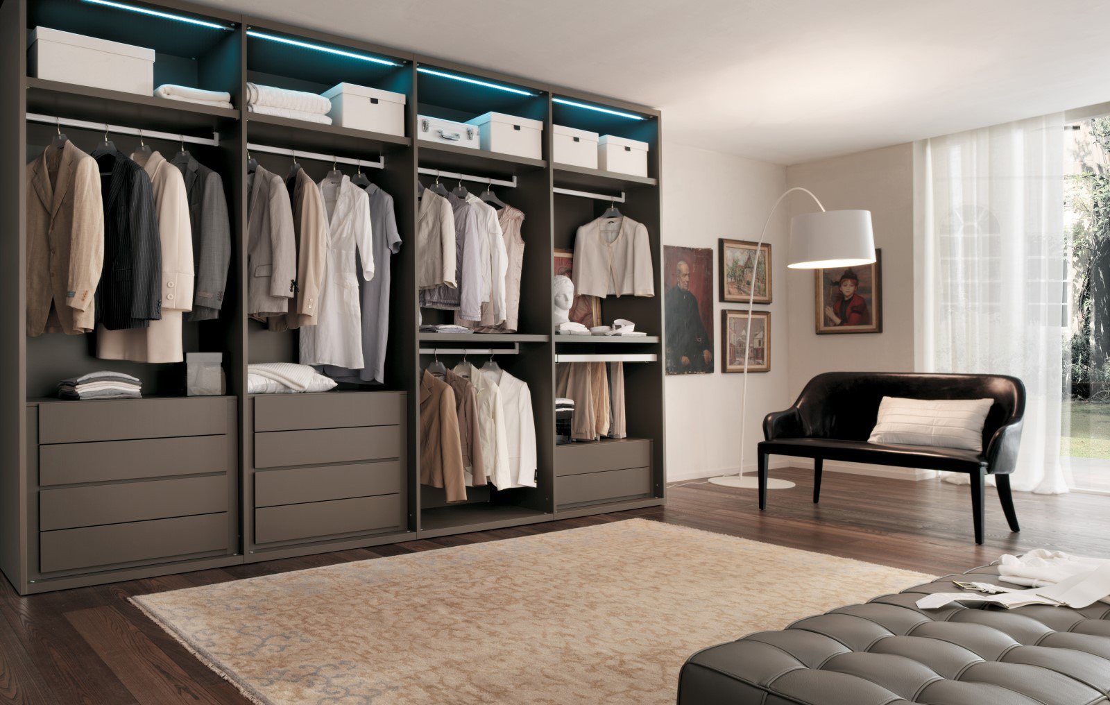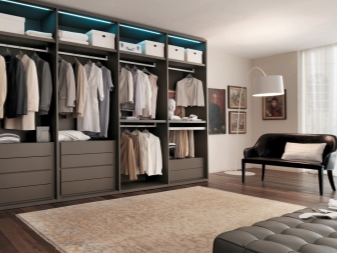- Spaciousness. In the closet should fit as much as possible clothes of different types.For this, shelves, drawers and a hanger bar should be provided;