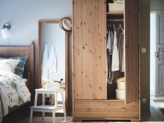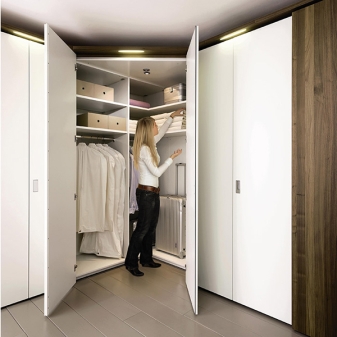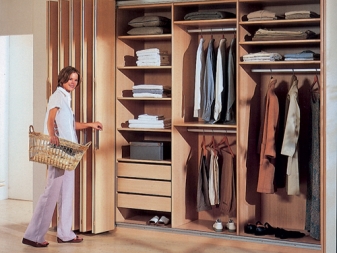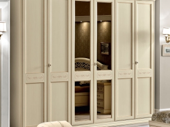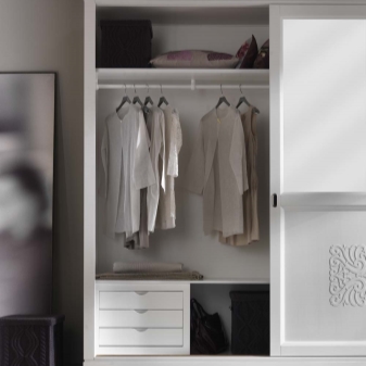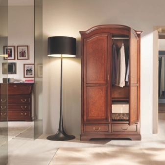 In large wardrobes there are shelves for storing hats, for shoes, a mirror, holders for belts and ties.