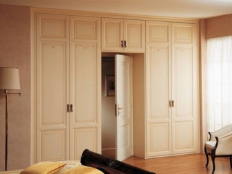 Wardrobe portal for the bedroom. This placement of the wardrobe allows you to save space and place a large number of things.