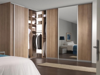The shape of the wardrobe can be straight and angular. The straight model has a classic rectangular shape. It is placed along a wall or between other pieces of furniture (for example, next to a chest of drawers or a bookcase). The corner model is intended only for installation in the corner of the room. Suitable for both spacious and small rooms, as it saves space.