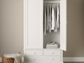Coats, suits, shirts, dresses, blouses, knitted clothes, underwear, hats, accessories can be stored in the wardrobe. A traditional wardrobe is a wardrobe with two or three hinged doors, behind one of which are drawers and shelves, and behind the other or two others - hung for hangers.