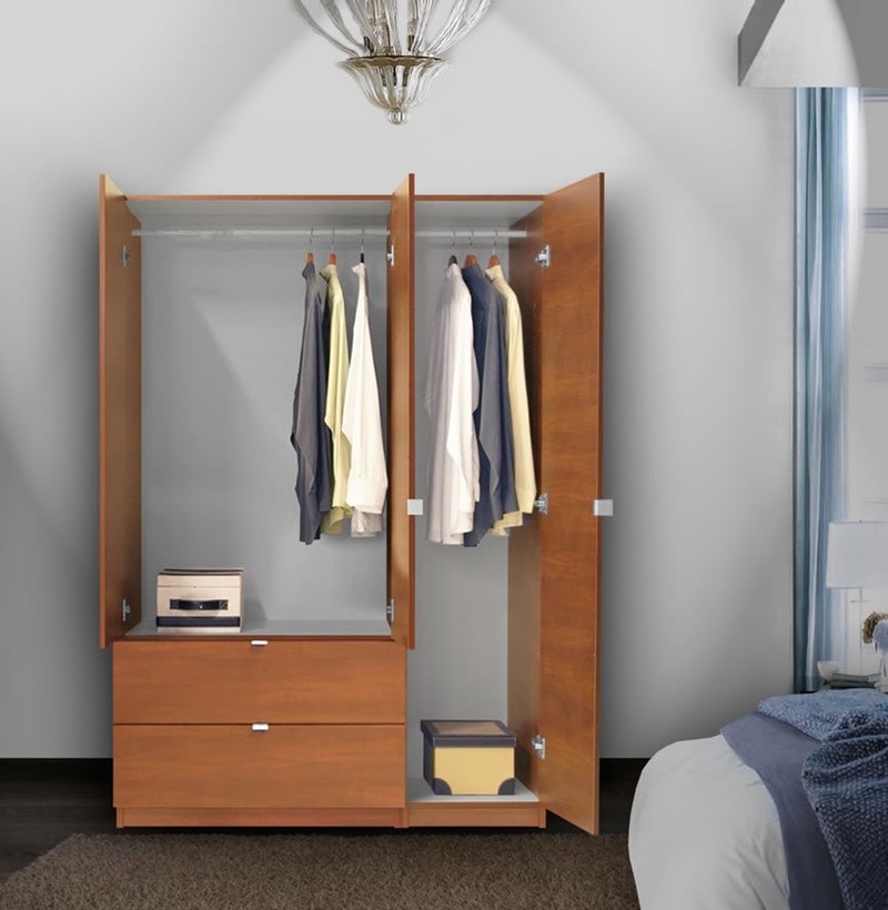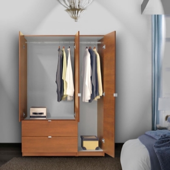 Standard two-door and three-door cabinets allow you to accommodate a much larger amount of clothing. Opening here can be both swing and sliding. In such a piece of furniture there are many compartments for different types of clothing.There is always a section with shelves and drawers, as well as compartments equipped with a bar, which can run along or across the cabinet. The transverse arrangement allows you to store on the hangers a much larger volume of things. In modern models of dressing cabinets, the rods are equipped with a pantograph system, that is, they move forward and retract, rise and fall.