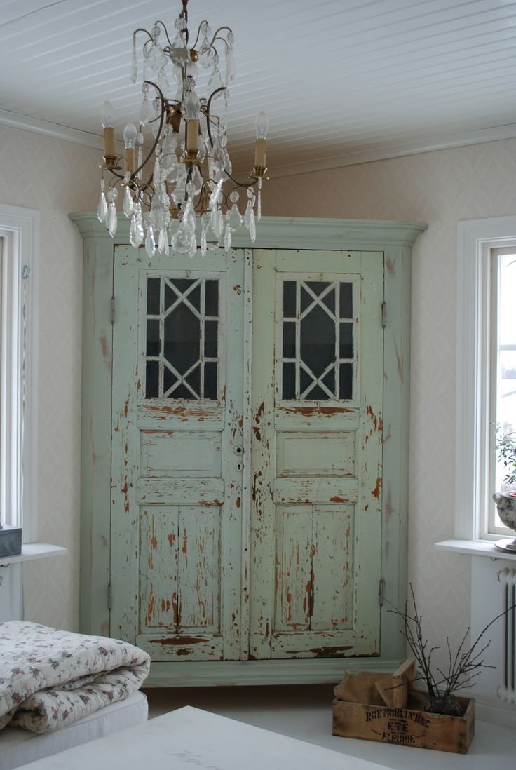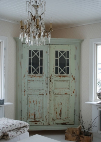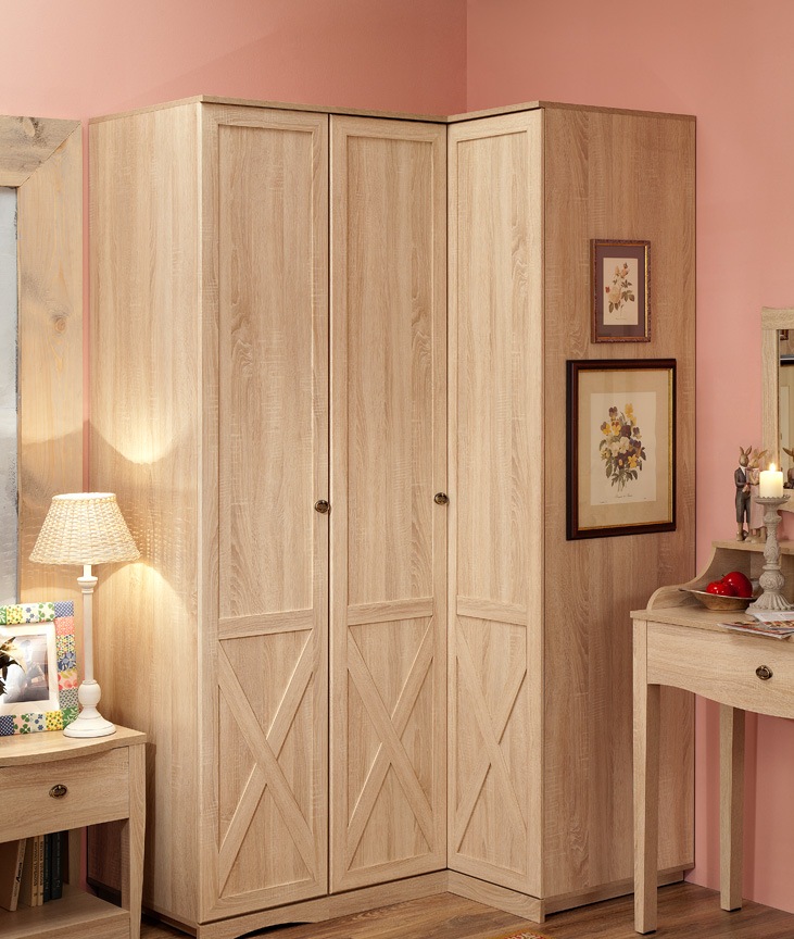 Corner wardrobe in the style of a French village - a great solution for the interior of a small room. Well, if all the other pieces of furniture and decor will be in the same style.