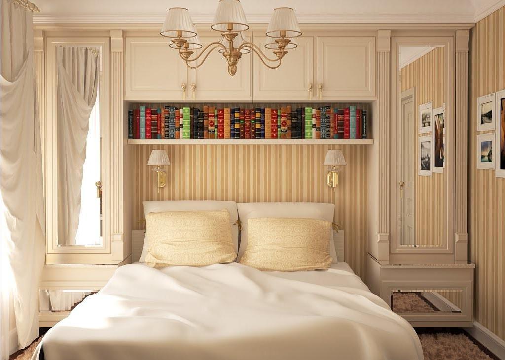 Of great importance is the location. The most convenient option for placing the cabinet is between two walls. So the space of the room is used most efficiently. If the door is located in the center of the short wall, then you can try to install two cabinets on both sides of it. And above the door hang the mezzanine. Get a kind of portal.