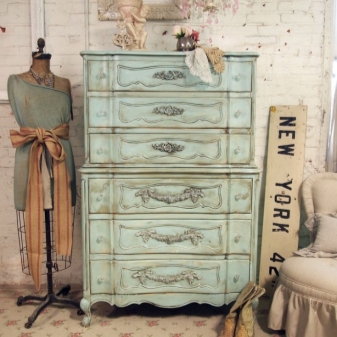 - special paints and craquelure effect will give the furniture a vintage look, visually adding age to it. Such coatings imitate the aged cracked surface. You can buy the right product in hardware stores;
