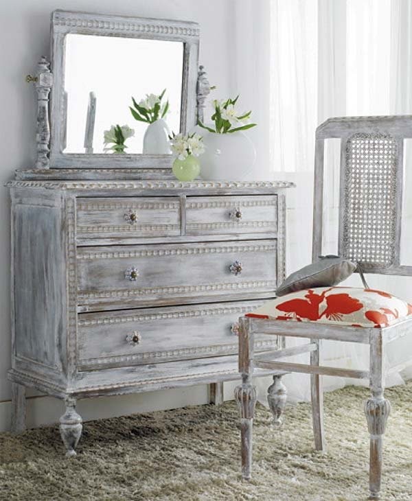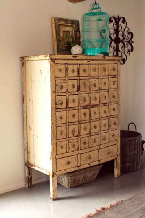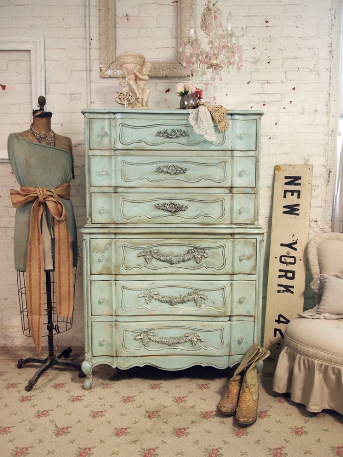 Sometimes, in order to give the furniture a vintage look, it is enough just to paint it, but you can combine this option with other suggested methods.