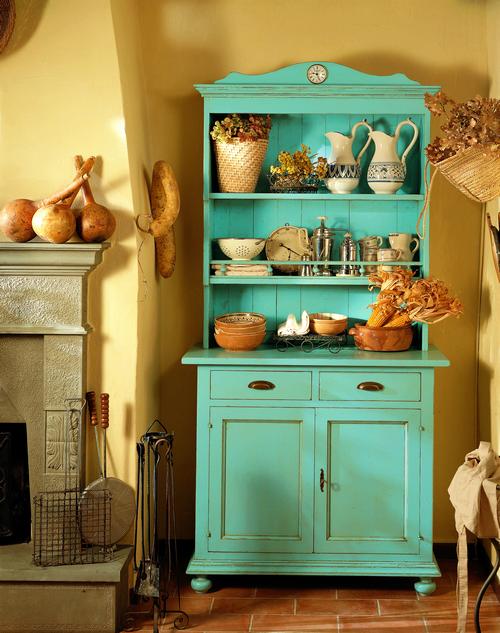 A vintage buffet, inherited from the grandmother, can fit into the country-style, suggesting the creation of a warm and cozy atmosphere, as in a rustic house.