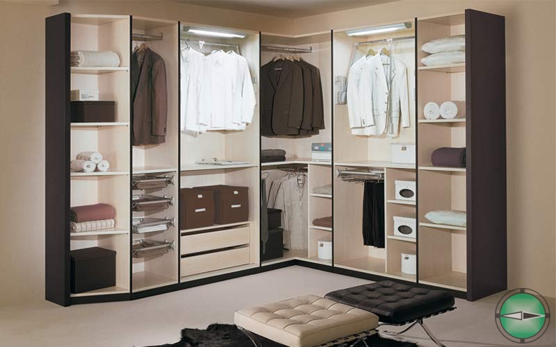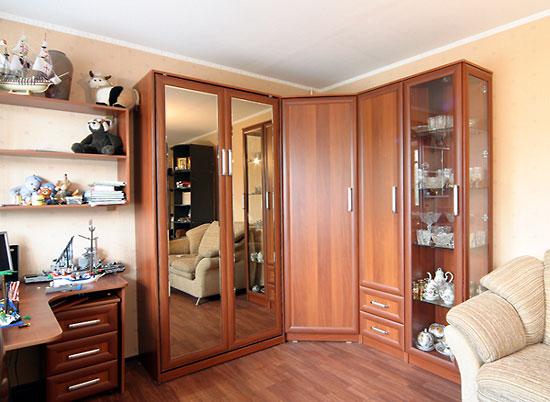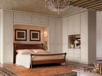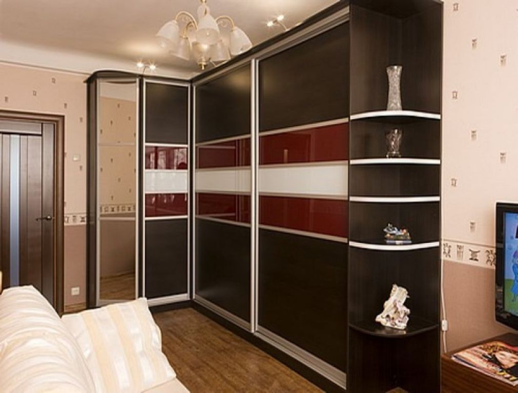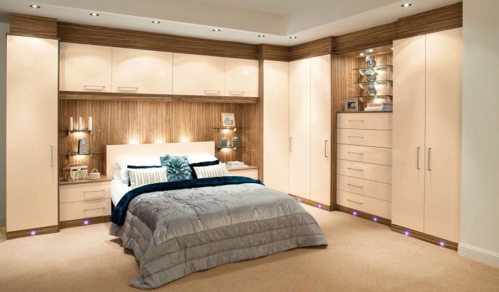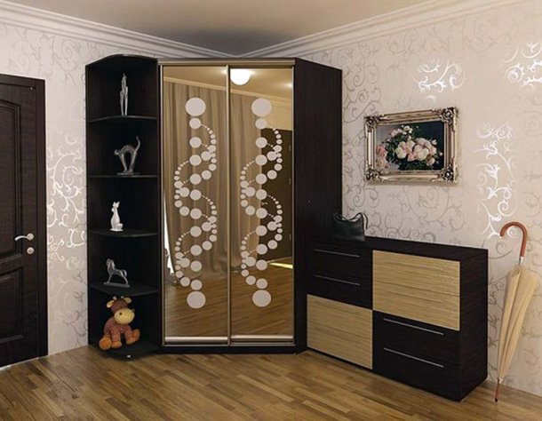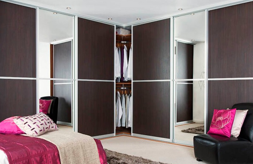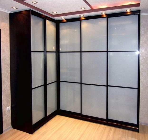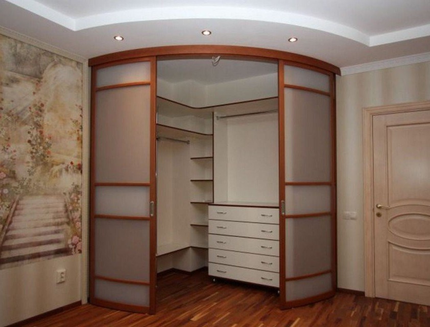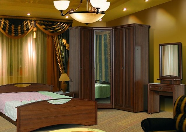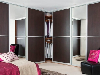 Installing a structure into a corner not only allows you to create the necessary space for storing things, but also fills up often neglected corner spaces.The number of compartments can be varied, it is limited only by the wishes of the owner and the size of the bedroom. Different forms and cabinets. Some of them are contraindicated for small bedrooms., but in large rooms look great and sometimes serve as a small dressing room.
