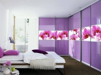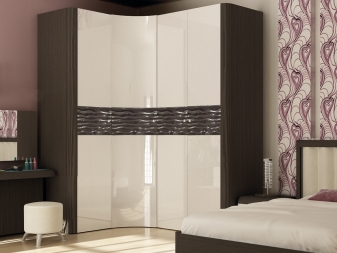 There are options that save space due to the door opening mechanism, and there are classic swing models. The price for them is different, as is the possibility of using one or another opening mechanism in each of the forms of the structure (for example, a curved figured cabinet cannot be equipped with compartment doors). For the bedroom, both of these options are used on a par. Also often the doors are complemented with mirror inserts or patterns. In recent years, often used samples with backlit, which perform the role of a large night lamp.