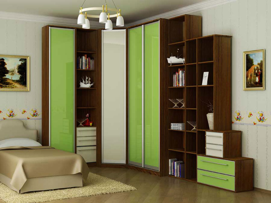 Choosing a corner cupboard in the bedroom, you should focus primarily on its intended purpose. You can pick up a set that will serve only as a dressing room, and you can use a closet to store all sorts of things from the whole house. The second option is chosen in the children's bedroom because of the need to store toys or books so that they do not clutter up the room.