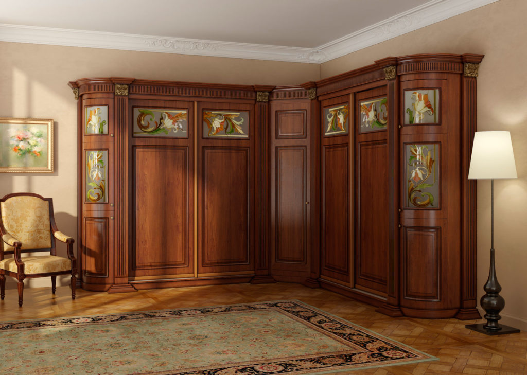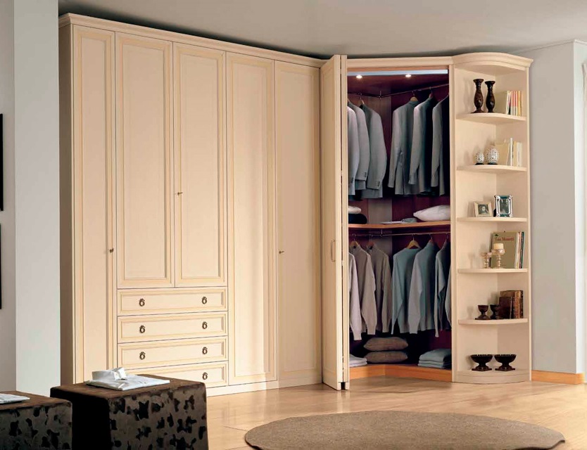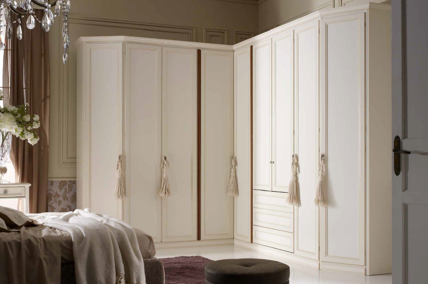 There are several classifications of corner cabinets suitable for the bedroom. The most important is their division into corpus and embedded: