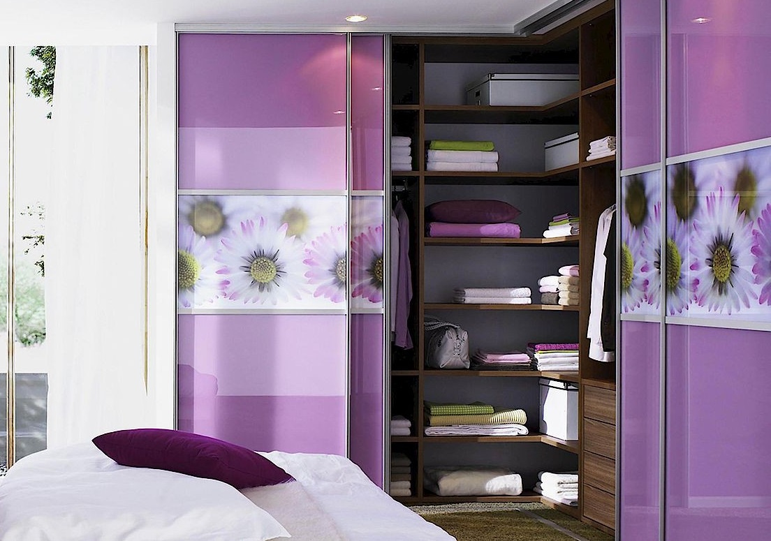 The main role in the bedroom is the bed, it is worth remembering this when choosing a corner wardrobe. It should advantageously emphasize the design features of the bed, emphasize them and in no case play a leading role in the interior. Even the selected photo print image, as a rule, echoes the frame of the head of the bed.