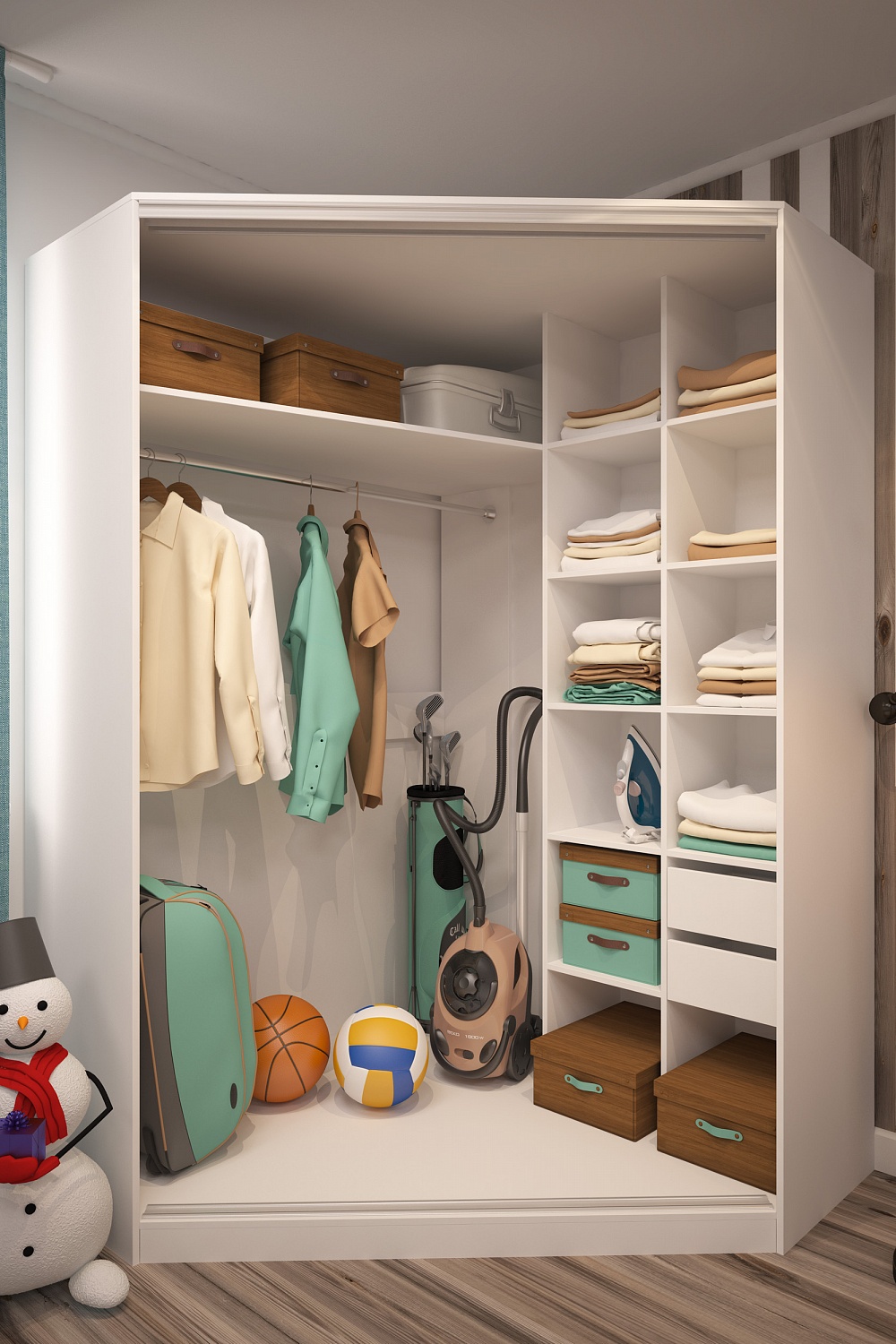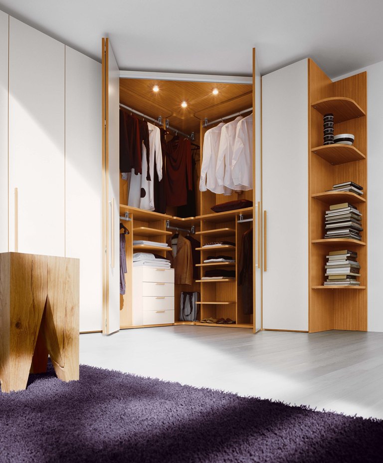 Despite its originality and practicality, corner cabinets have one small minus. Because of the particular design inside this piece of furniture, so-called “dead zones” are formed. These are hard-to-reach places or a very small space that is hard to come up with. However, such a nuance is easily eliminated with the help of systems with drawers, pantographs and shelves. In addition, even on small shelves you can have small-sized accessories. For example, hats, books and stuff.
