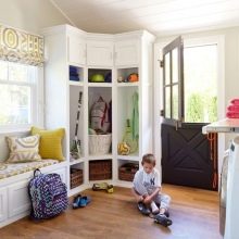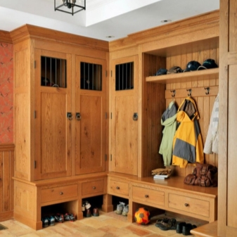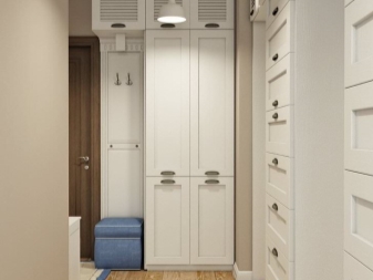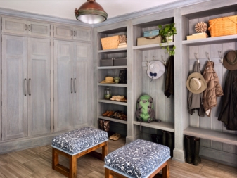 In such a small room they also often install a closet, a wardrobe, a closet, a bookcase, an open cupboard. Small shoe cabinets are also popular - so-called galoshnits.