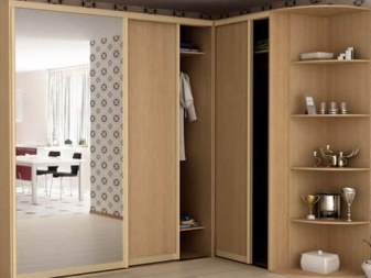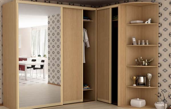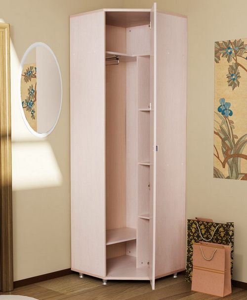 It is rather difficult to install shelves in the corner, and such an angular arrangement is inconvenient. Things located in the corner will be difficult to access, so the corner itself inside the cabinet is wasted.