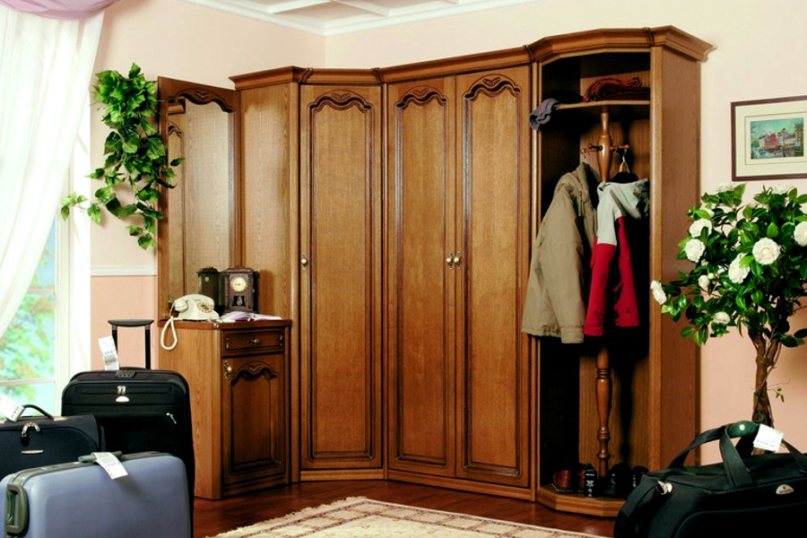 Moreover, such a wardrobe can have both traditional design for more classic interiors, and a trendy and modern design. This is a great solution for a private house with a fairly spacious entrance hall. In the “Khrushchev” it is better to install a more compact corner model, for example, a five-wall cabinet. In this case, you can find budget furniture of economy class, but with beautiful facades.