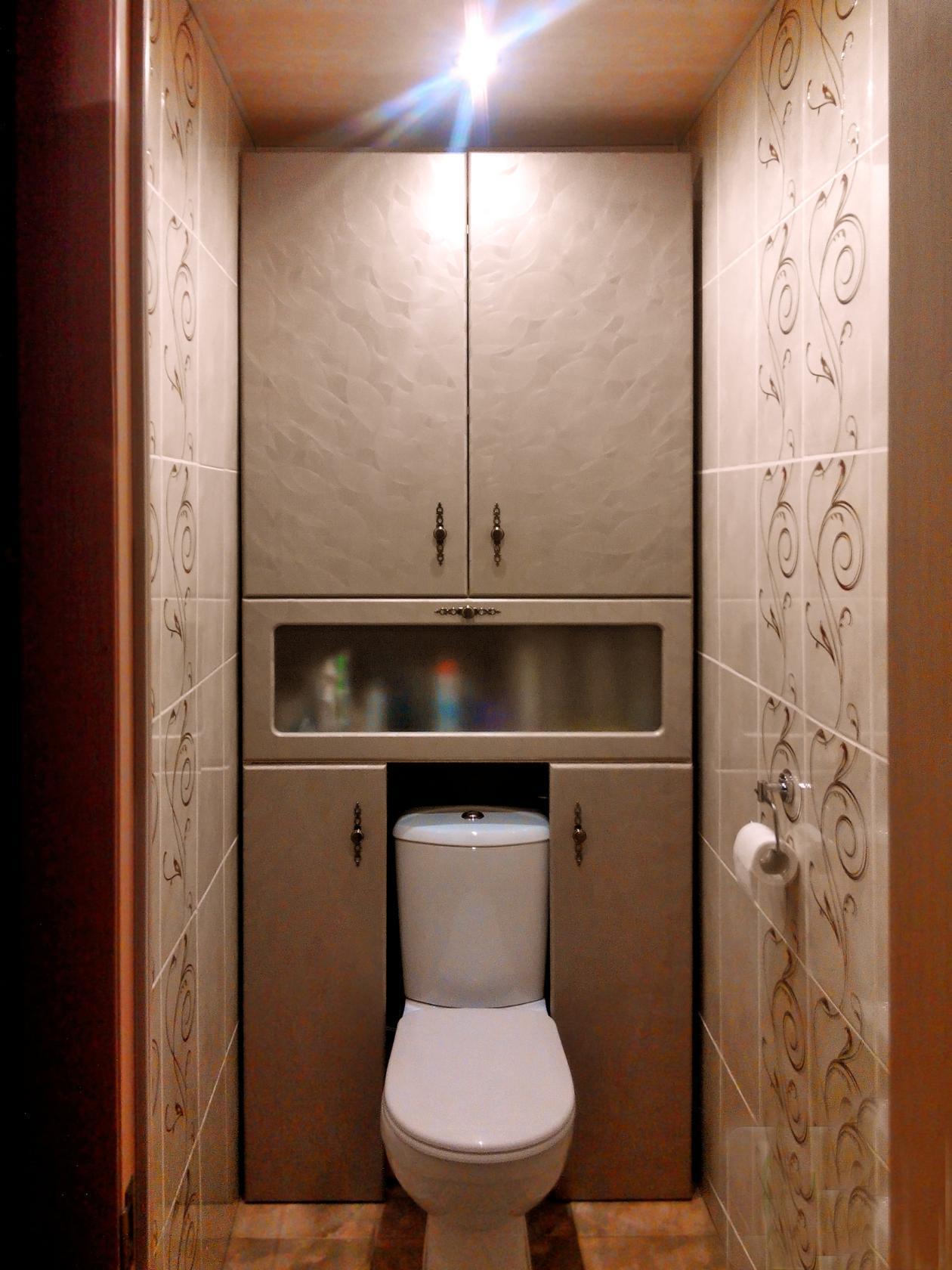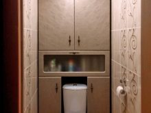 - Small closet in the toilet can be installed behind the side of the toilet or hang over it. It can store items for cleaning and other things. It is preferable to put the white furniture in the toilet.