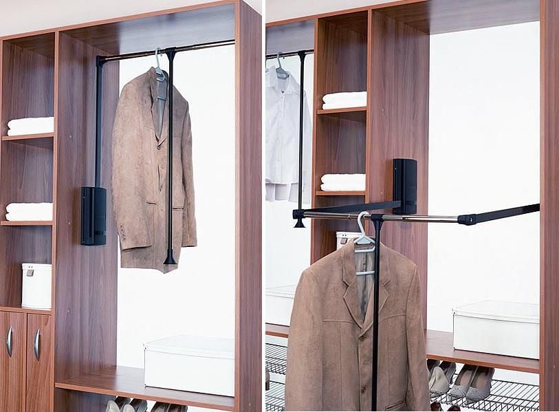 Manufacturers are trying to save space in the room, and even in some models have a bar for clothing perpendicular to the wall, which frees up a few extra centimeters.