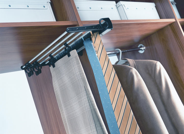 The simplest hooks also increase the capacity of the cabinet. Hangers for ties, belts and belts are an indispensable attribute of any cabinet.