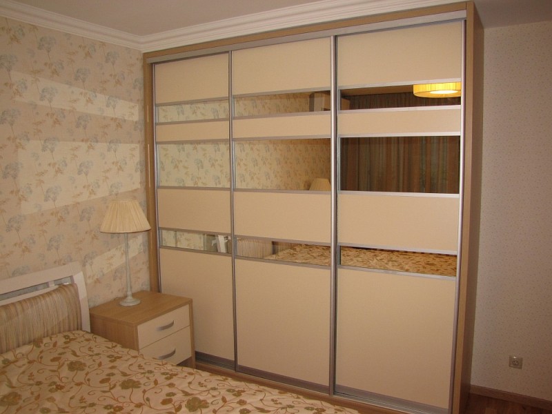 - If the wardrobe is installed in the bedroomthen they put it against the wall so that it takes up little space and does not interfere with moving around the room. His appointment in this room is the storage of linen, so here he does not carry a special load in space;