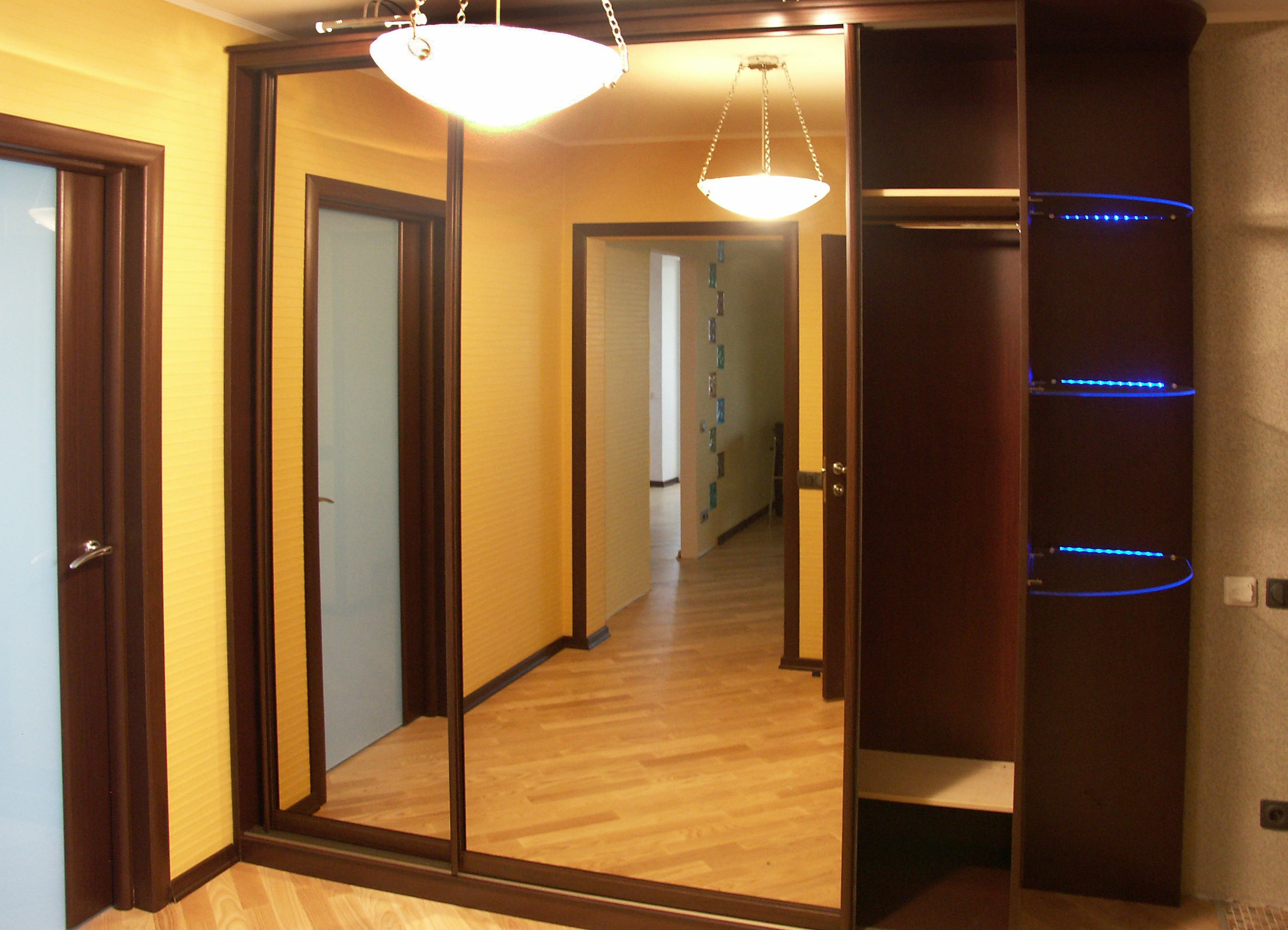 - Embedded cabinets often they are made to order, which is very convenient for buyers with average incomes. Such furniture will easily fit into any interior and will not differ from the existing situation. Such a cabinet is built directly into the wall. It has drawers, shelves, a mirror, there are single-leaf and double-wing.