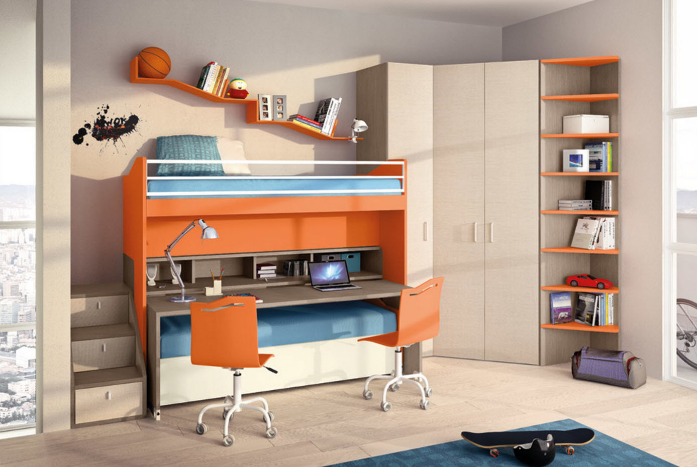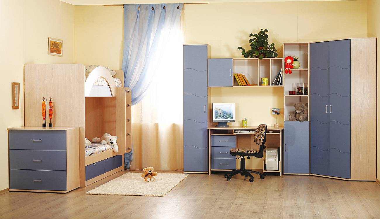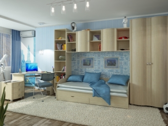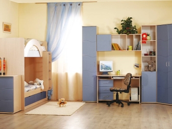 This furniture is a complex of products. They are sold in a single set. For example, joined together a wardrobe, a bed and a desk. You can perfectly save your finances, the space of the room, as well as stylishly and harmoniously enter products into the nursery. It is noteworthy that such options can be suitable for two children. After all, for two beds you need to have a more spacious apartment. And so you can create the perfect interior and a place to rest for your sons.
