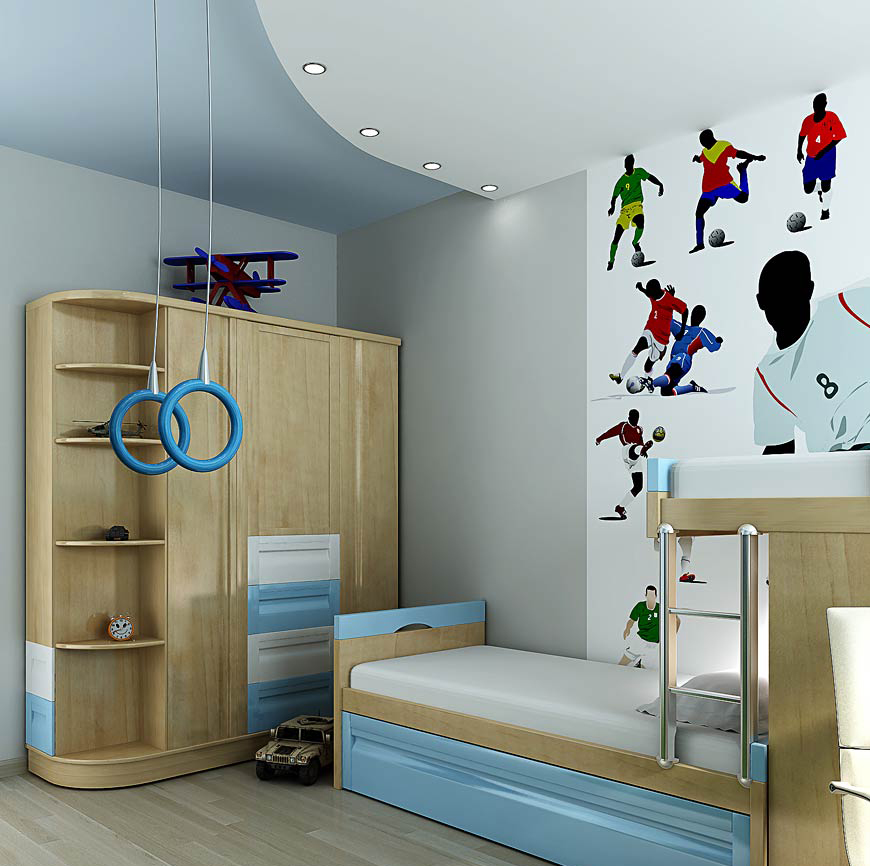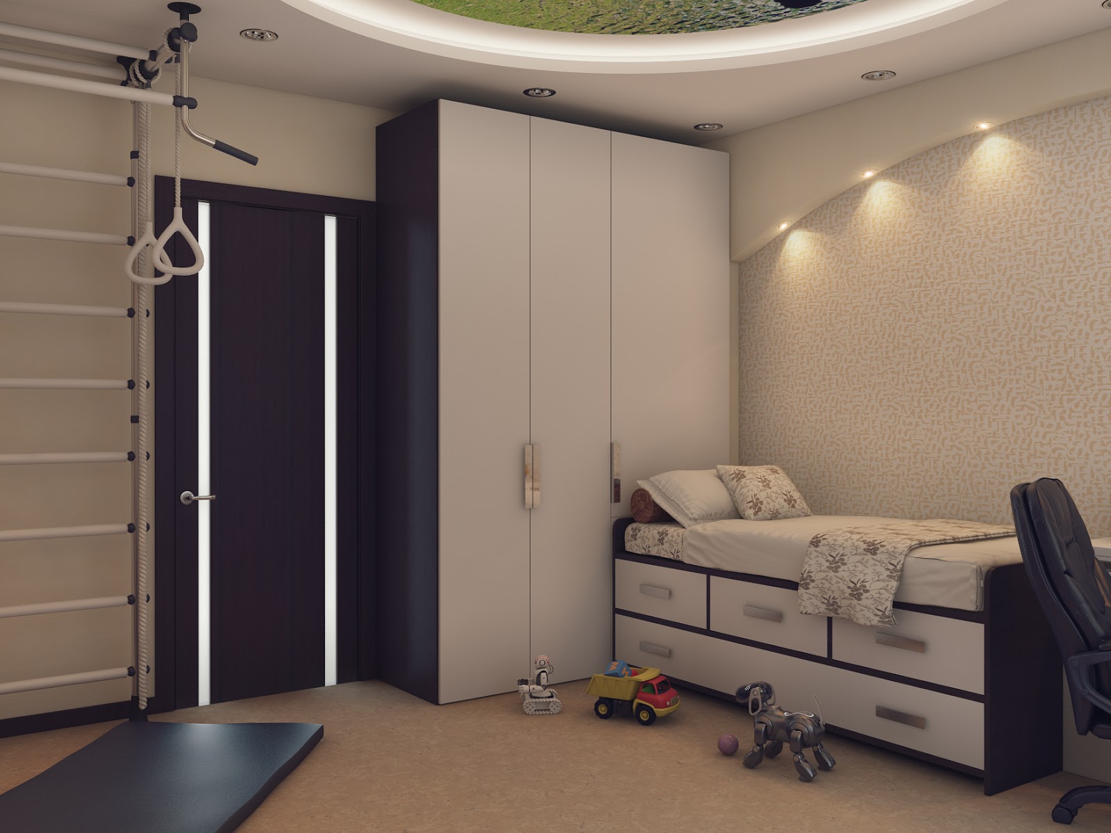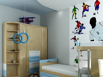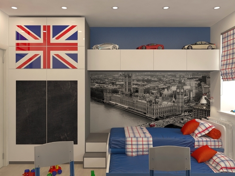 For guys who have already reached adolescence, you should choose more practical shades. They may not be as bright and colorful. For example, deep blue or dark gray colors are perfect in the bedroom for a boy. At the same time, you can also express your individuality with the help of drawings. These can be images of significant people significant for a teenager, favorite movie characters or abstractions. The main thing is that everything is combined with a single style concept of the room.