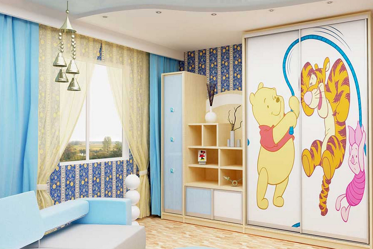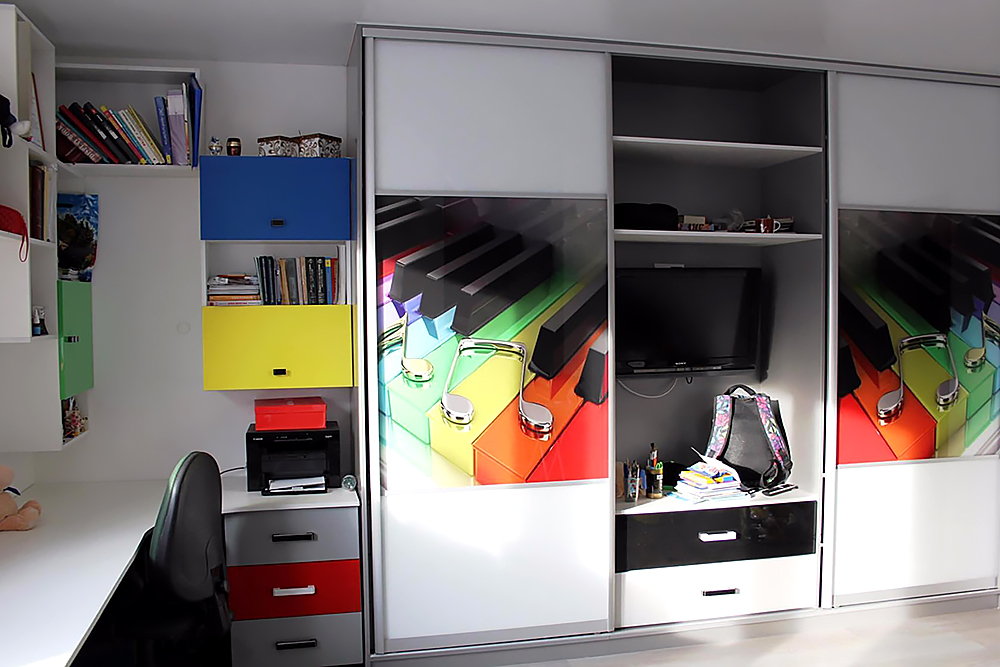 As for the selection criteria, we figured out.There is no one piece of advice regarding color variations. The color and stylistic execution of the facade should coincide with the general interior design. If your baby is still quite small, it is better to use pastel shades. You can choose green, pale blue, yellow shades. They will help to charge the child and his parents only with positive energy and good mood. In this case, you can arrange the facade with a bright pattern or photo printing.