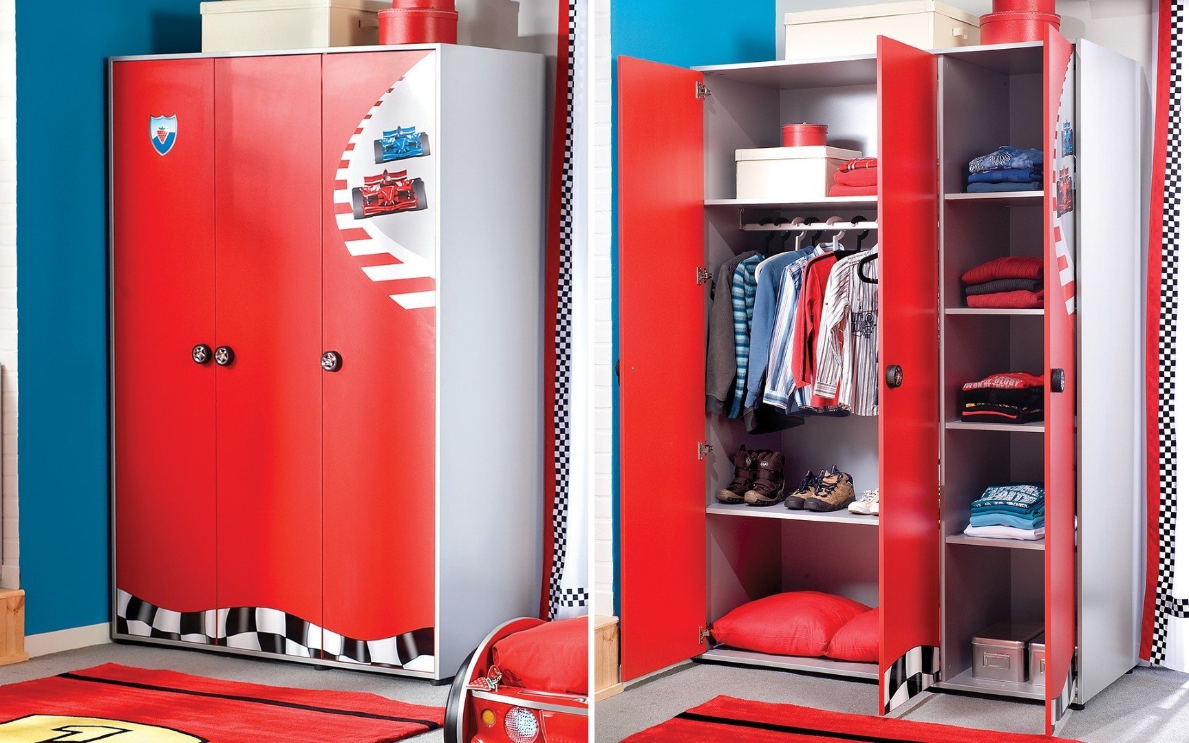 An opportunity to contain all children's things. Such a cabinet will help to gently fold all your son's accessories. Also, boys quickly learn to order.