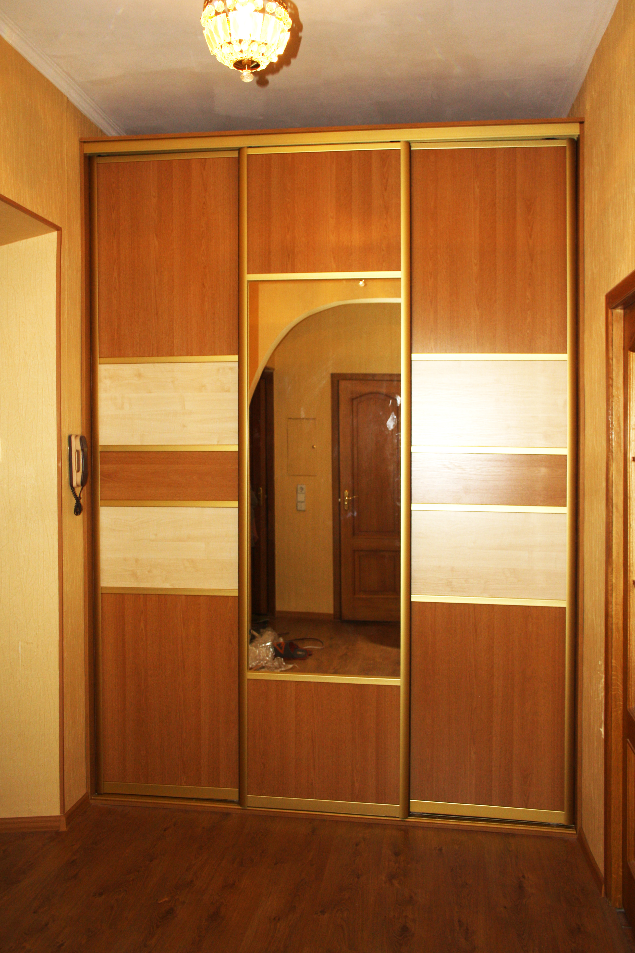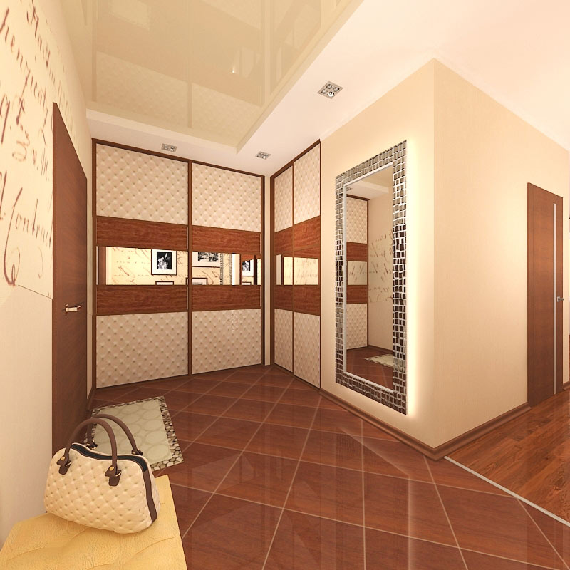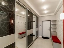 In the "Khrushchev" corridors are narrow and long. For them, ideal built-in wardrobes.Such structures can be located both along the length of the corridor and on a narrow wall, occupying its entire surface. Since the height of such wardrobe reaches the ceiling, they are very roomy and can include a diverse number of compartments for things.