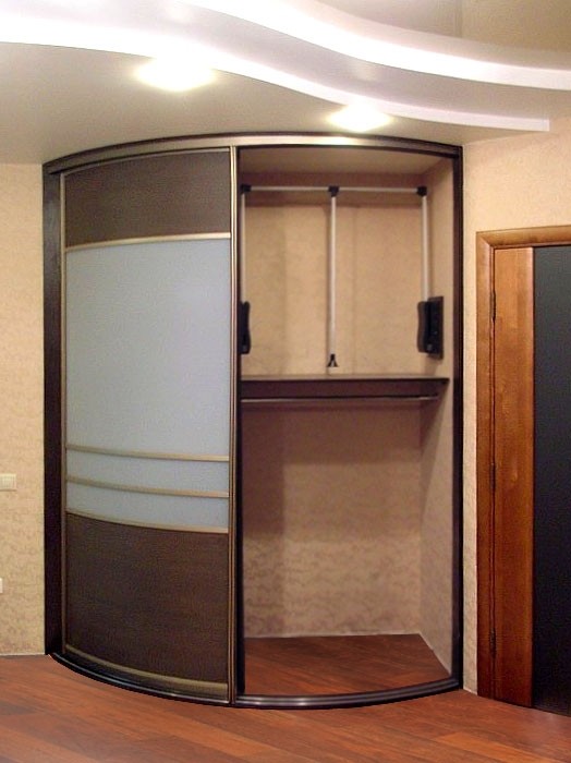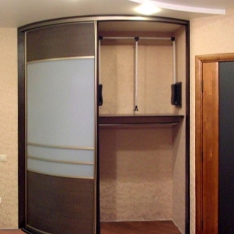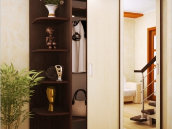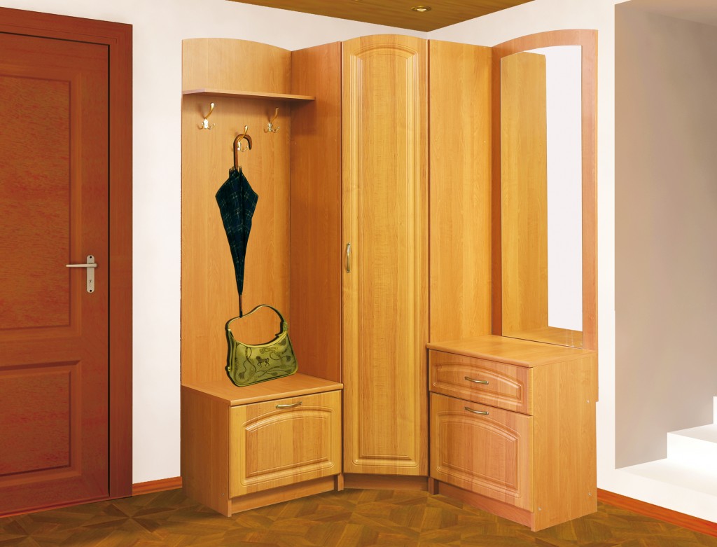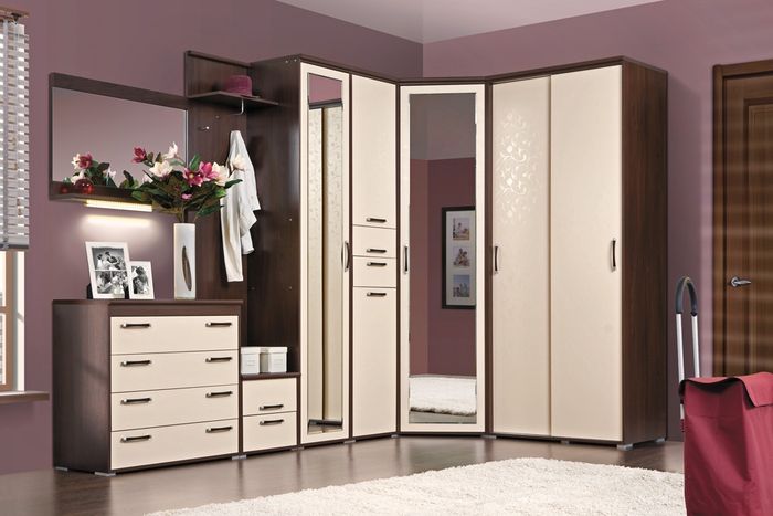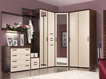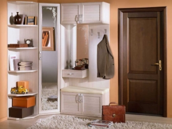 The angular location does not allow for additional shelves or pedestals, especially if the room is small. If the corridor is narrow, then there is no point in placing a cupboard in the corner, the purchase of such a product is permissible only if the front has a square or rectangular shape.