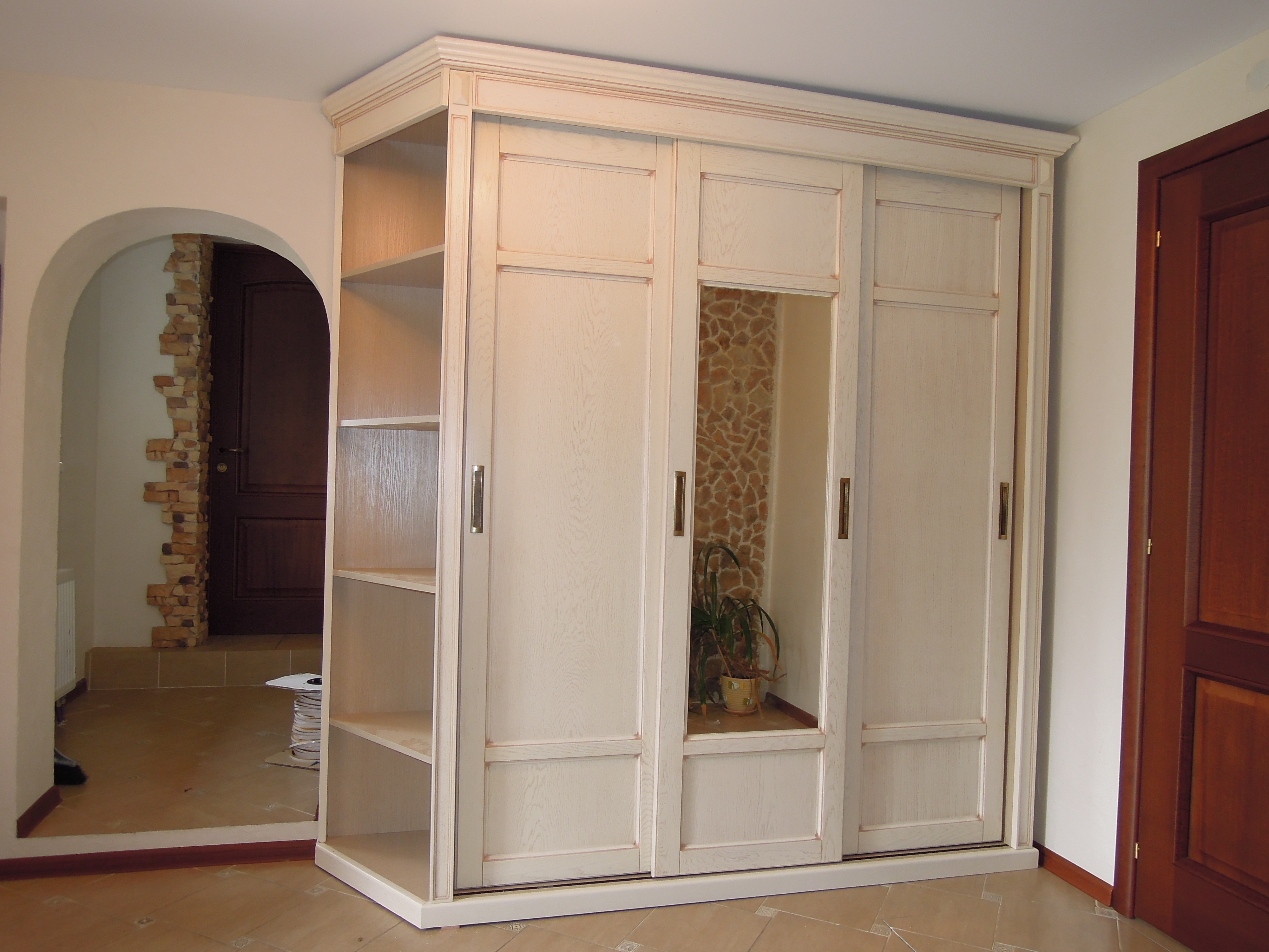 A separate type of wardrobe is a wardrobe. It is a product with sliding doors, consisting of two or three compartments, depending on the area of the room. Sliding wardrobes are divided into the following types: