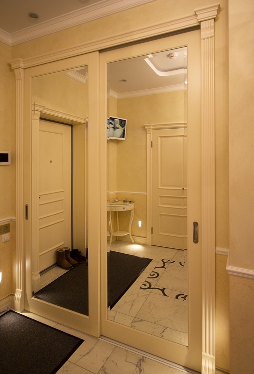 - A more popular option is chiffonier with mirror or mirrored doors. A similar element is necessary in the hallway. Mirrors are often decorated with special patterns or decorative stones and glasses. The choice of material should be made based on its durability and compatibility with other textures used in the interior of the room.