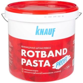 - Ready mixes. The main feature of the finished putty is that it does not need to be diluted. This is a ready-made mixture, which is based on vinyl. It has a clear white color. It is applied to smooth surfaces along with the previous structures. It includes Knauf Rotband Pasta and Polimer Finish. Available in containers of 18 kg.