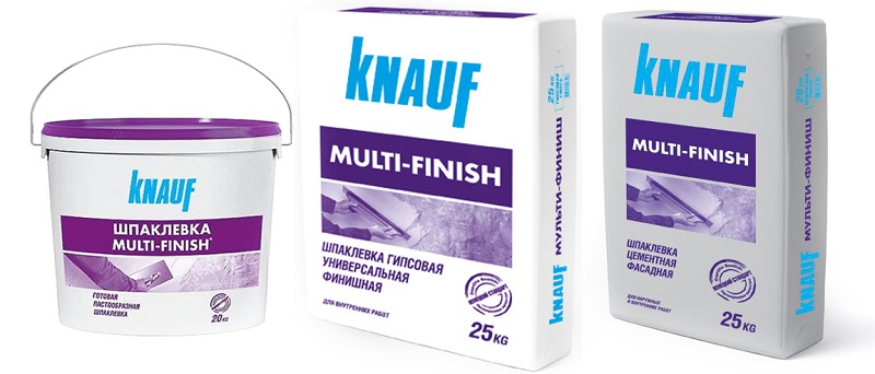 - Cement. For example, Knauf Multy-Finish. It is gray and white. It is used for surfaces such as cement plaster and concrete. It can be used to fill cracks and holes in external facade and interior works with high humidity.