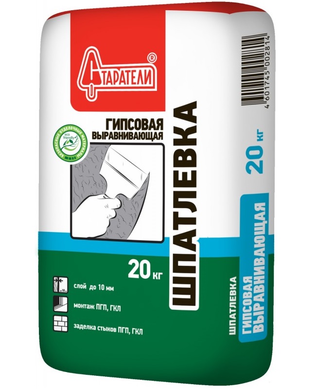- The composition of gypsum putty includes various modifiers and plasticizers, so there will be no cracking on the treated surface, creating protection against peeling or shrinkage of the material.