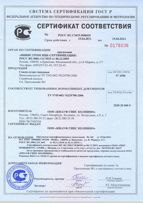 In the construction market can be found and fake materials. Often in a fake include gypsum unimportant quality, which after drying will crack on the walls. Such formulations may also include unspecified harmful substances on the packaging. For this reason, well inspect the product and require a certificate of its quality. If there is documentation, you have a quality product.