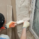 When conducting outdoor work requires certain weather conditions. It is impossible to putty external walls when it rains or when exposed to direct sunlight.. The smoothing of the putty surface to give the ideal smoothness to the coating is carried out using a sponge grater.