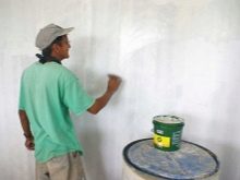 - The price of such coverage exceeds the cost of many types of putty. However, this material can be applied with a layer one millimeter thick, unlike acrylic or cement putty, which can significantly reduce the mixture consumption.