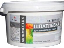 Latex putty company "Lakra" is issued under the name "Choice of the master." The composition of this material, in addition to the main components, includes antiseptic additives, which makes the coating resistant to the appearance and spread of fungus and mold. The mixture is designed for interior walls and ceilings before applying the final coating.