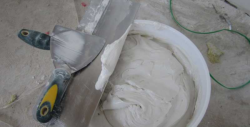 No need to prepare the solution at once from the entire amount of plaster in the package. In the capacity for putty it is necessary to fill a small amount of dry mixture. Water is added to the material, while constantly stirring.