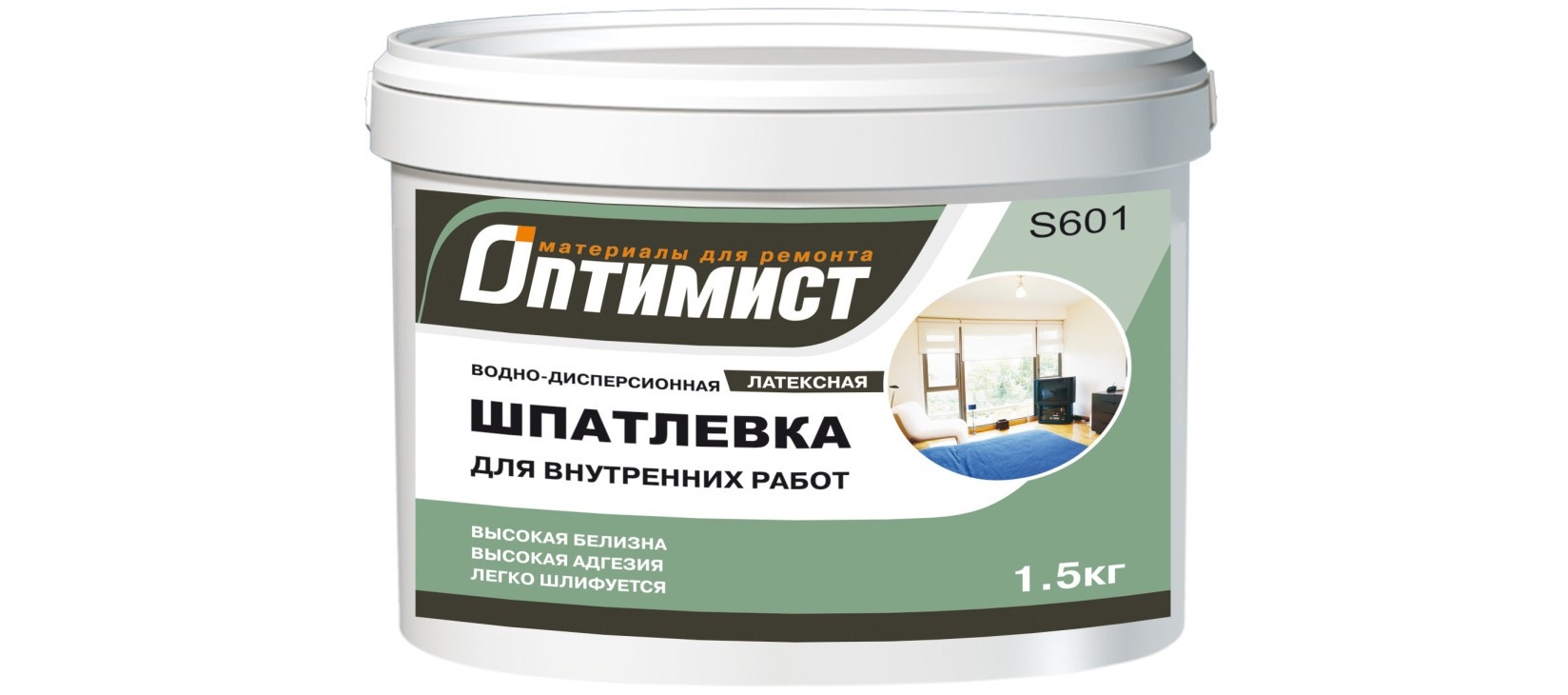 "Optimist" also produces a latex water-dispersion mixture. This material is designed for interior decoration in dry rooms. The mixture is used to eliminate cracks and irregularities on the surface before applying the final layer.
