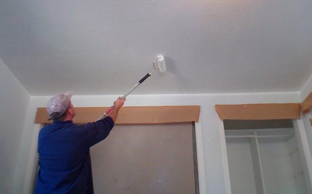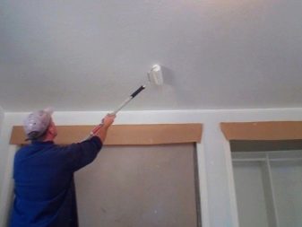 - Before applying the putty ceiling treated with a primer. It is applied with a brush or roller - first in hard to reach places, and then over the entire area.
