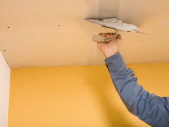 Spatula irregularities on the ceiling, dimples of screws, joints and cracksas well as corners (if the ceiling is multi-tiered). To bring them and strengthen, special corners are acquired. Hide them will help putty. Such a local putty can replace one or two layers, which means it saves material.