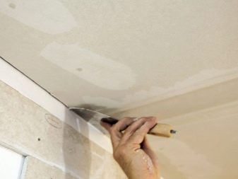 - levels the surface (this is important when the decorative coating is applied with a thin layer, under which all the drawbacks of the ceiling will be visible);
