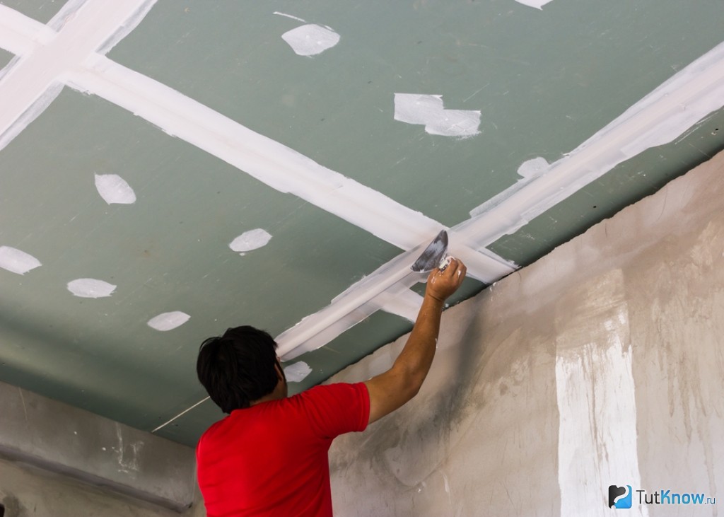 - If the ceiling has a construction made of gypsum board or chipboard, you need to give it time to shrink. All building materials should dry well. Only in this way the putty will lie flat, will not crack and fall off.