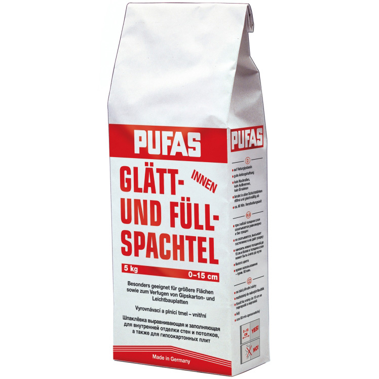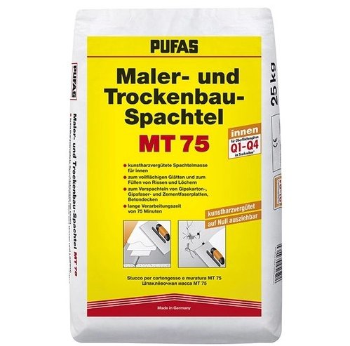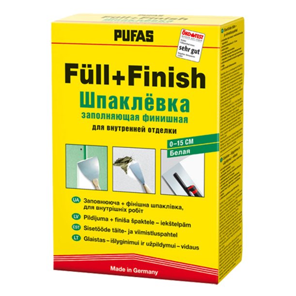 Pufas blends have been produced in Germany for over 100 years. In addition to putty solutions, the concern also produces other construction materials. German production guarantees high quality - it meets modern needs and requirements of the market, so you can be confident in the reliability of the product being purchased.