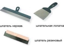 - Directly for applying putty needed set of spatulas - enough of three pieces. The average size - about 20 cm in length - suitable for small areas around the door slopes and window openings. It is convenient to use the big fifty-centimeter tool, shpaklyuya the main surfaces of walls. The smallest spatula in the set is simply indispensable for hard-to-reach zones and corners.