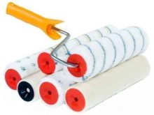 - Mix for soil, as well as rollers and brushes for priming walls, After all, for high-quality surface preparation for putty without the above tools can not do. The principle of the ratio of the primer area and the size of the roller is the same as that of the spatulas.